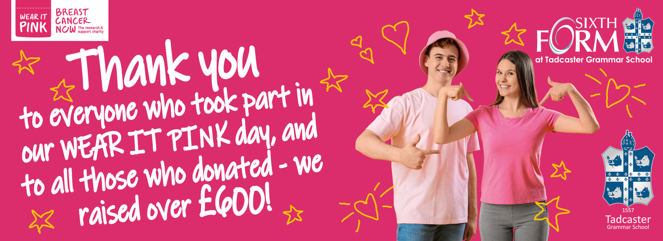 Thank you so much to all Sixth Form students and TGS staff who took part in the Wear It Pink day on the last day of term.